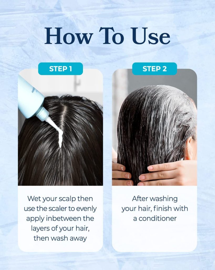 حداکثر دو یا سه بار در هفته ، قبل از شستشو موها با شامپو ، موهای نمدار هر قسمت از سر را به ترتیب باز کرده و مقدار مناسبی از محصول را ، روی نقاط مختلف پوست سر بریزید و با نوک انگشت به صورت دورانی ماساژ دهید (این محصول کف تولید میکند). سپس آبکشی کرده و موها را شستشو دهید .