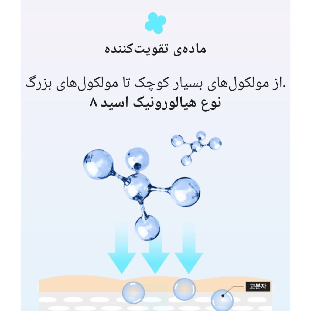 ❤️حاوی 8 نوع اسید هیالورونیک، از وزن مولکولی بسیار کم تا بالا.